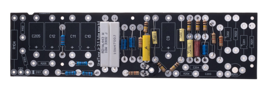 UralTone Jr can be built with or without a spring reverb. In this guide, the JR is equipped with a reverb circuit. Building the non-reverb version is done in exactly the same way — you simply leave out the reverb components from the assembly.