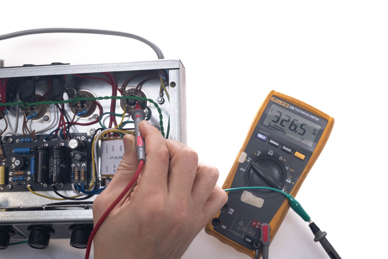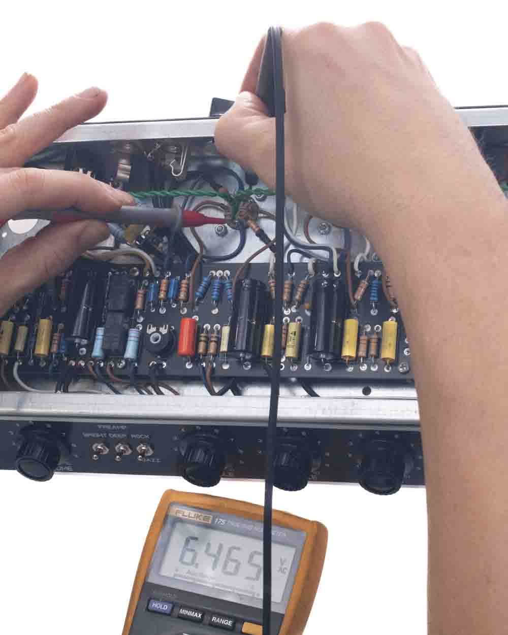 - Disconnect the black probe and measure the heater voltage at the pilot light terminals or any preamp/power tube socket. The reading should be 6.3Vac.