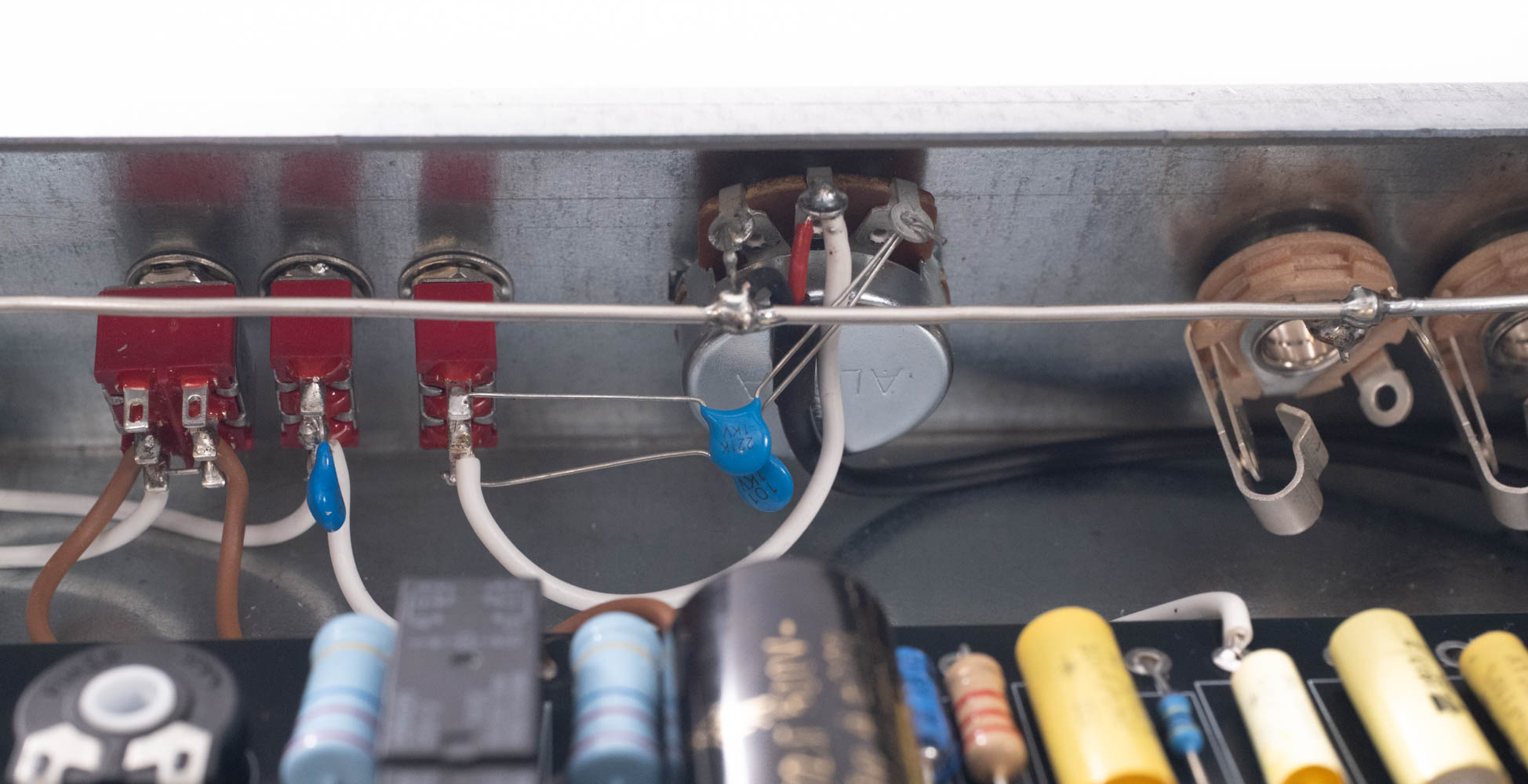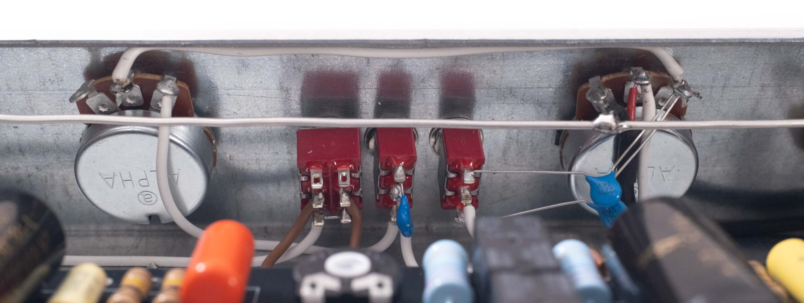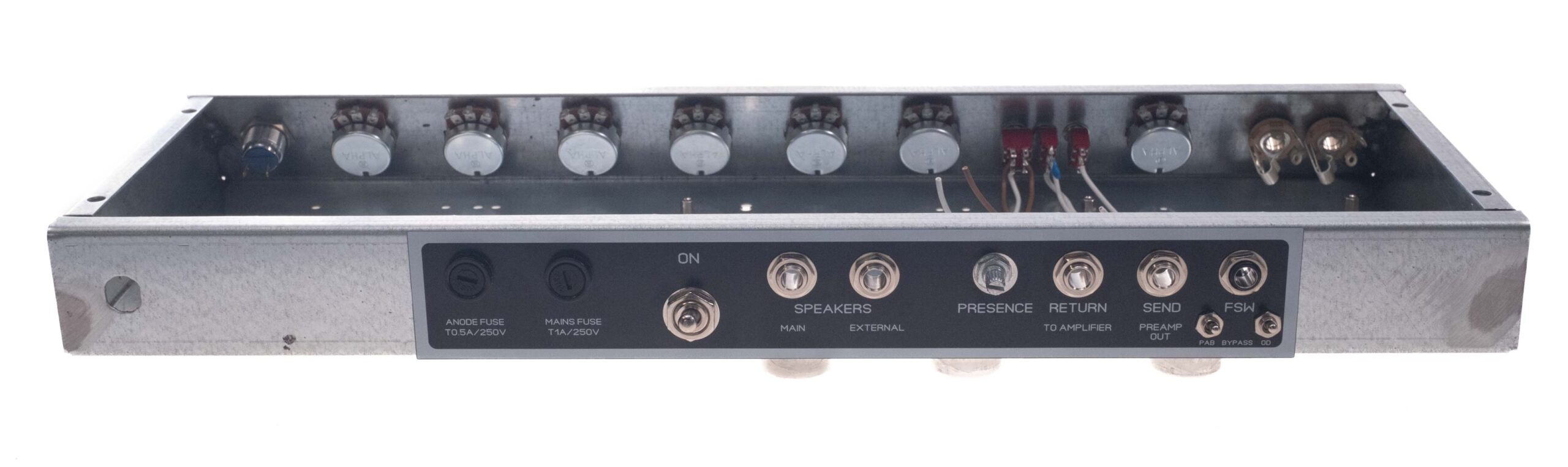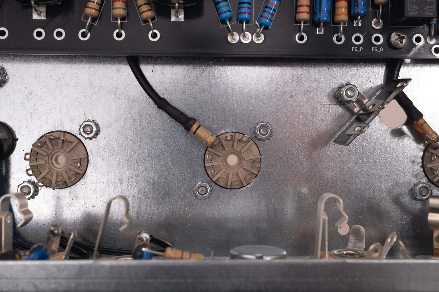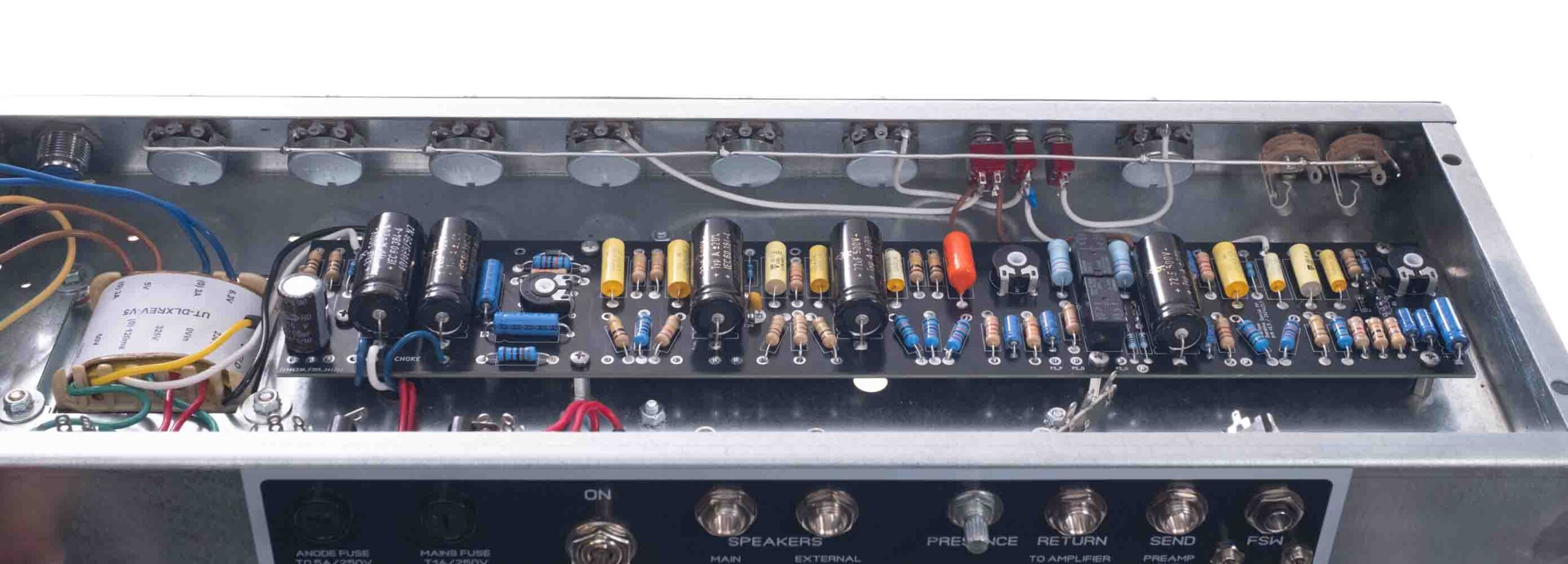 If the amplifier produces no sound when toggling the footswitch settings (rear panel override switches), turn off the power and inspect the circuit. Again, as a reminder: measure and wait for the voltage to drop below 10V before working on the amp.