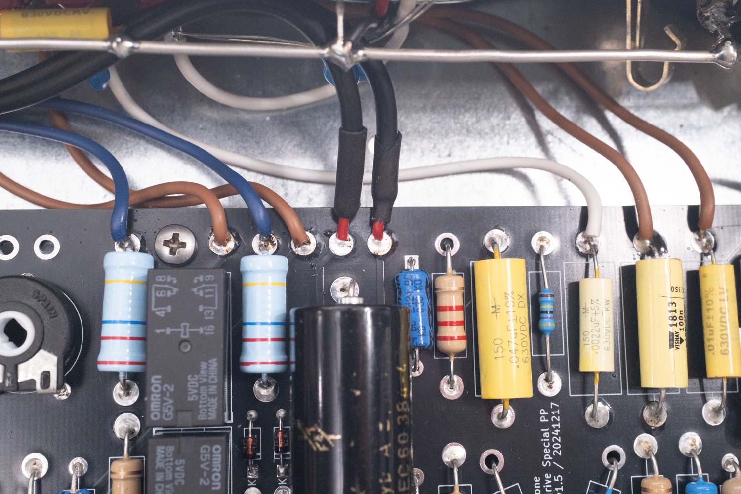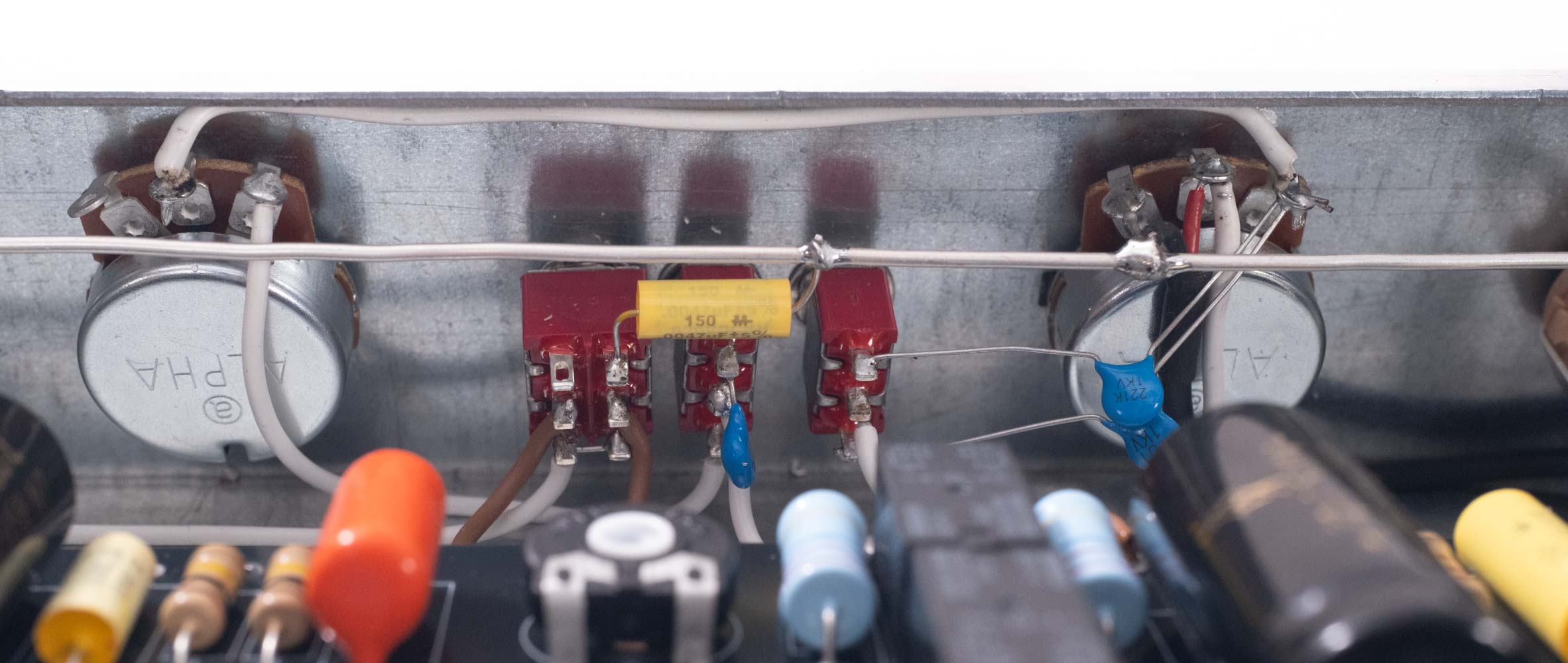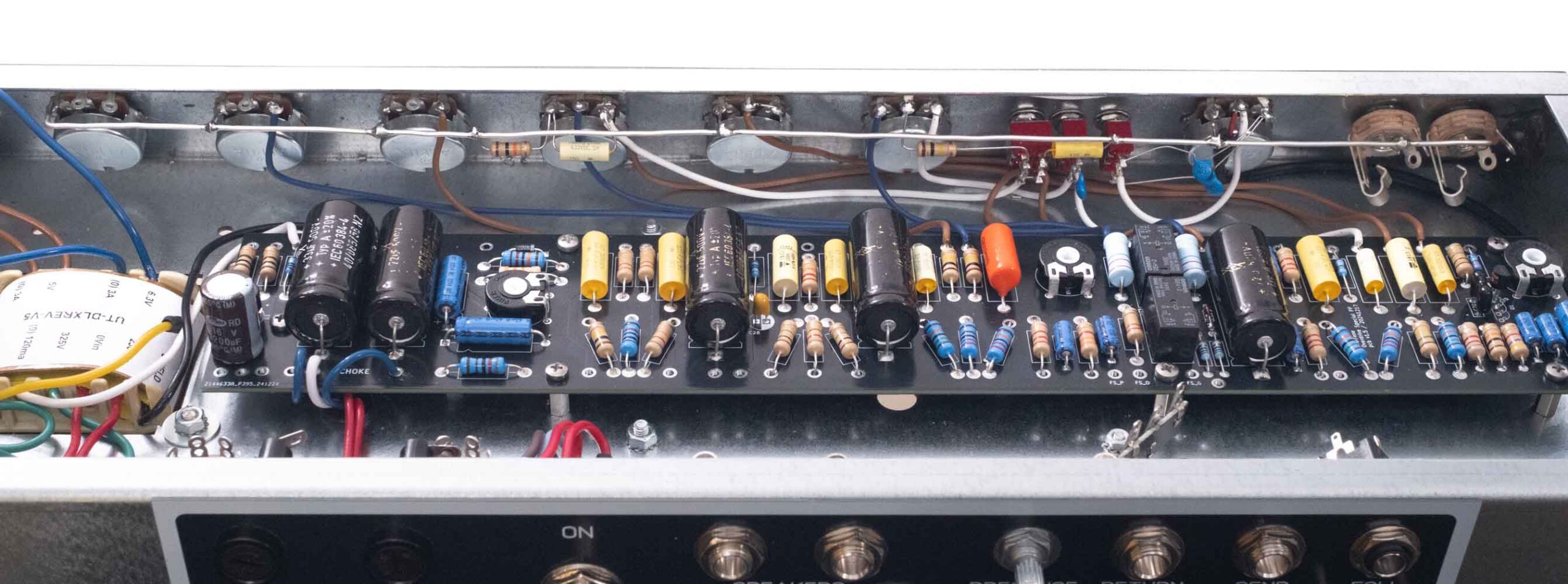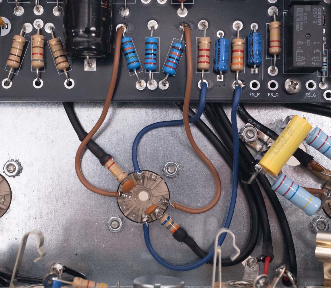 If the amplifier produces no sound when toggling the footswitch settings (rear panel override switches), turn off the power and inspect the circuit. Again, as a reminder: measure and wait for the voltage to drop below 10V before working on the amp.