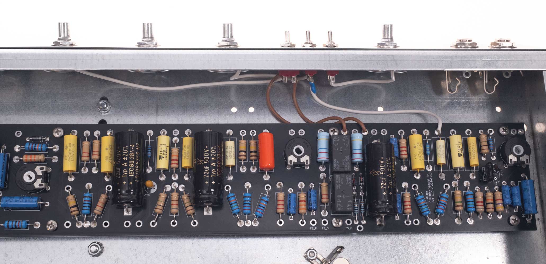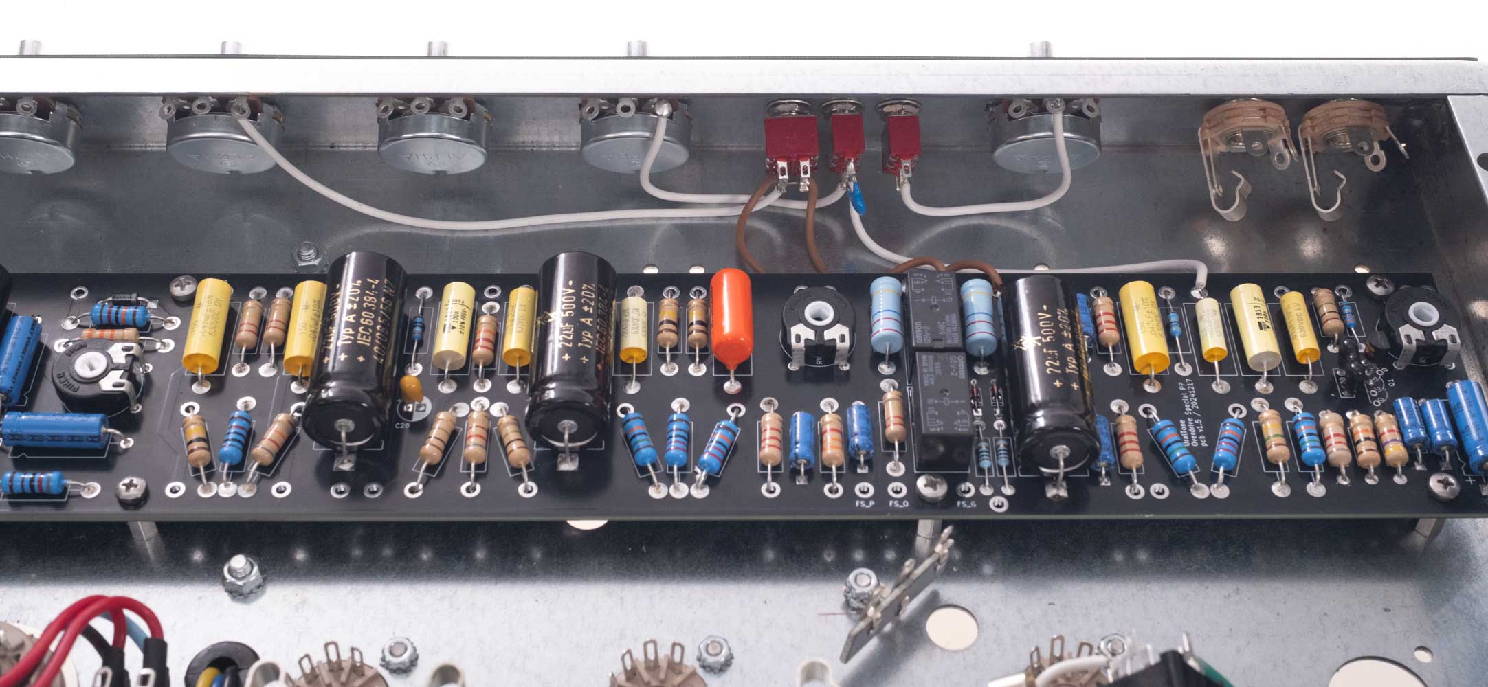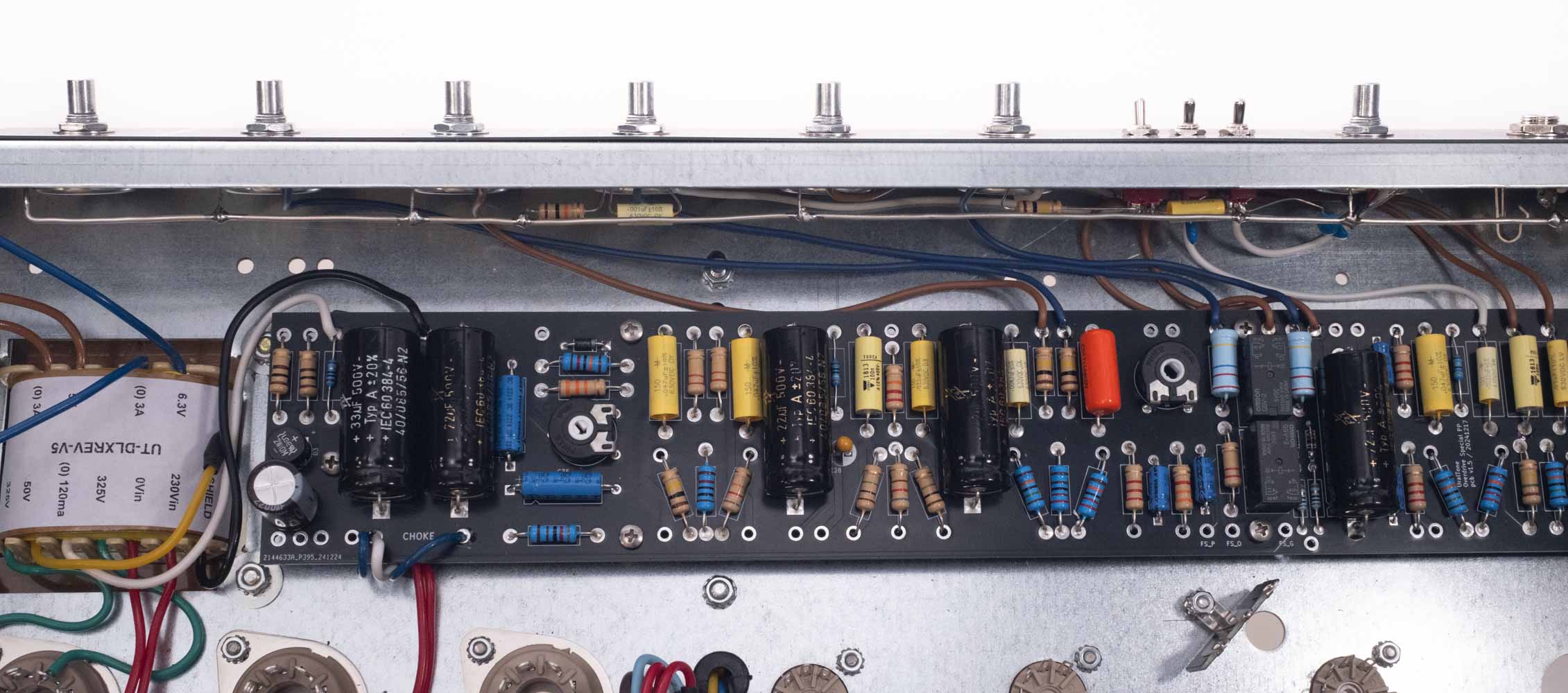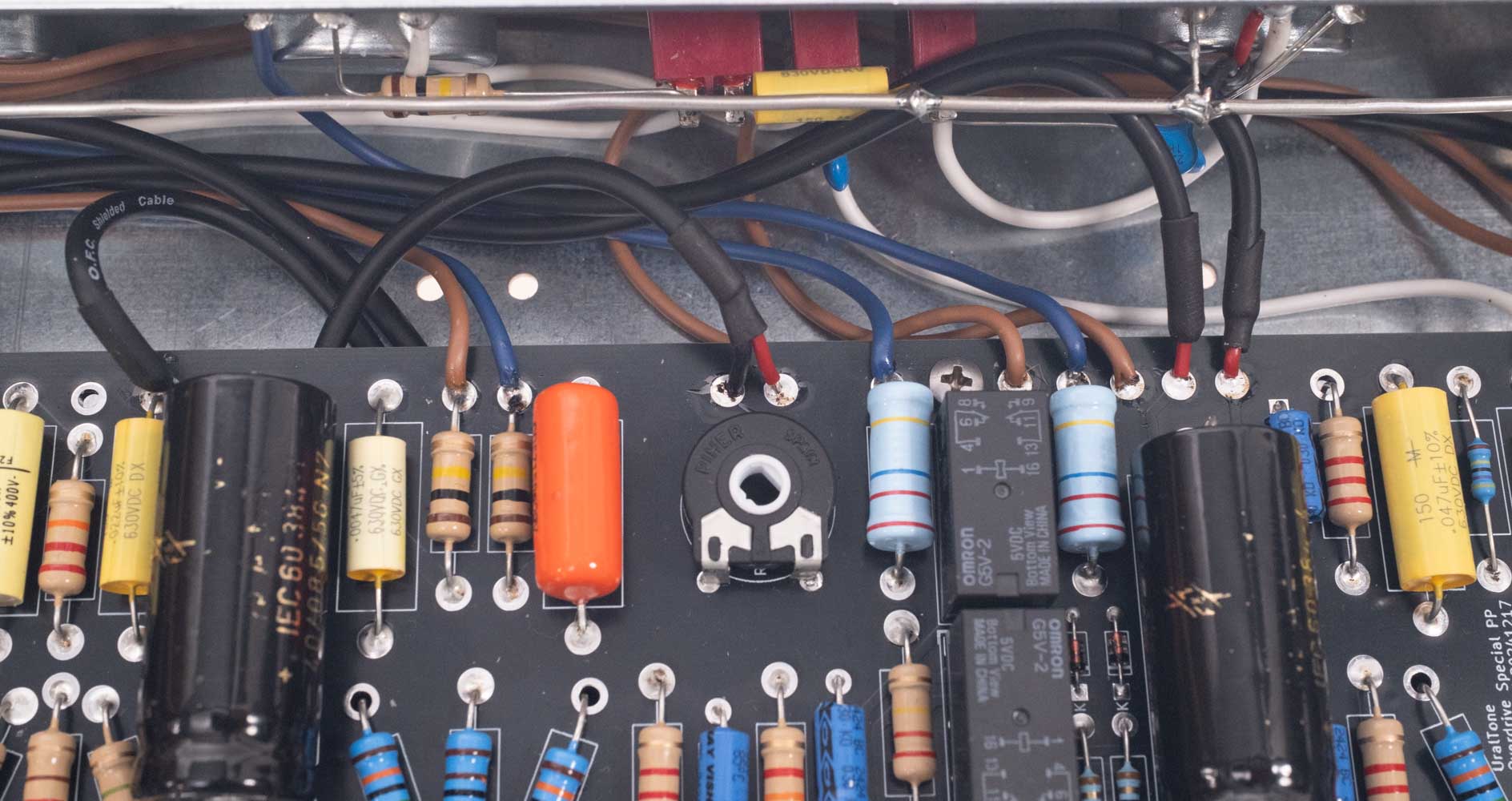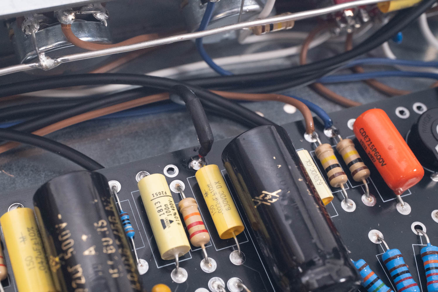 If the amplifier produces no sound when toggling the footswitch settings (rear panel override switches), turn off the power and inspect the circuit. Again, as a reminder: measure and wait for the voltage to drop below 10V before working on the amp.