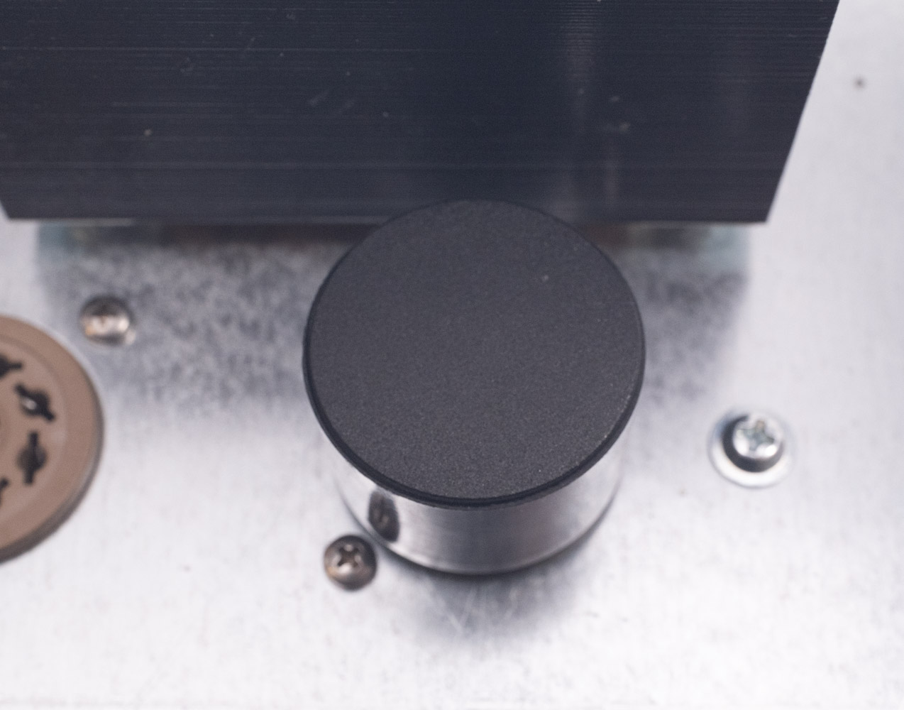 Attach the knobs on the front and rear panels. Turn the amplifier with the open side facing down and shake off any loose debris.