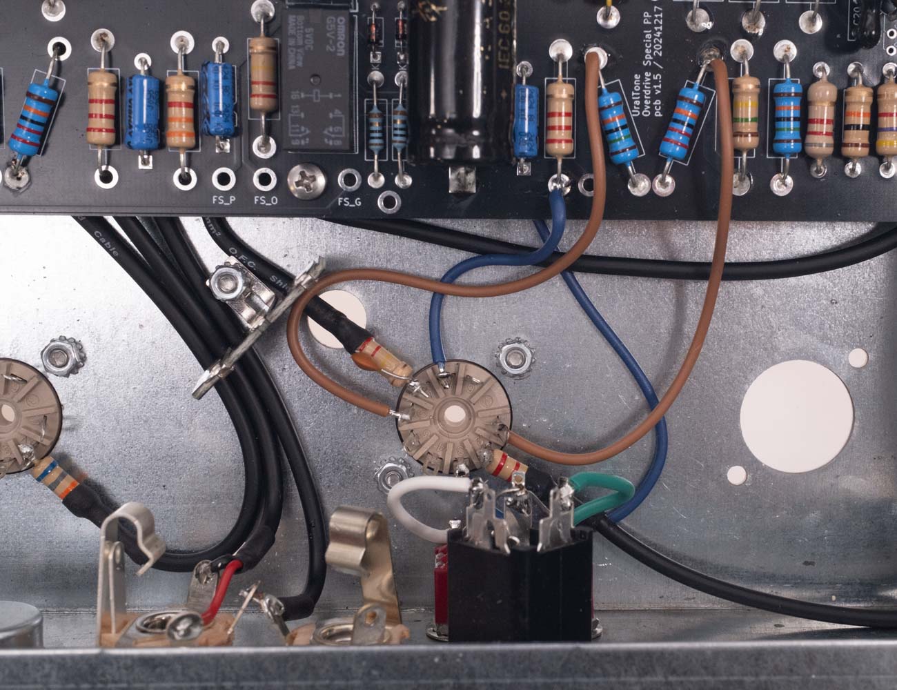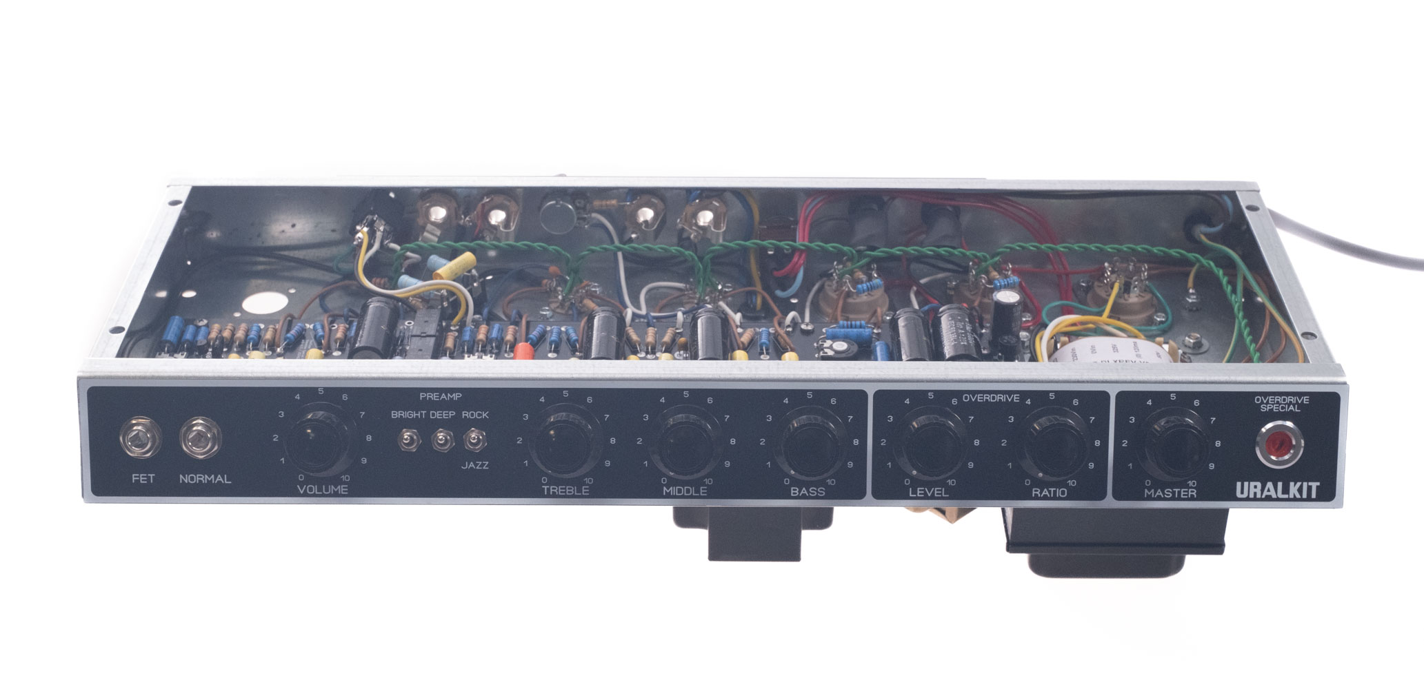 The UralTone Overdrive Special is a version of the renowned Dumble ODS guitar amplifier adapted to a Princeton chassis. The circuit has been slightly scaled down from the original, with a 6V6 pair in the power stage, delivering a solid 22W of power.