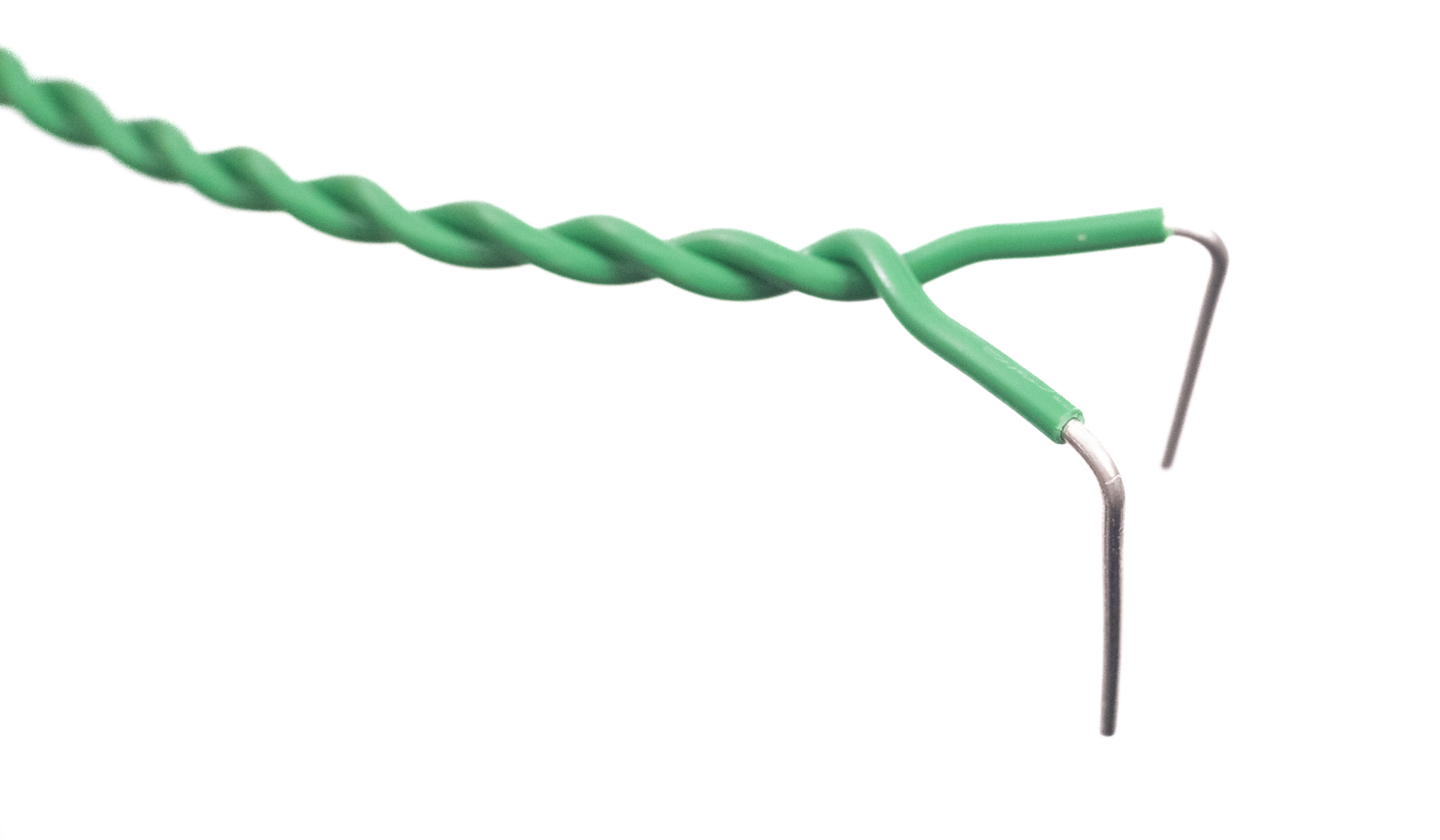 Bend a thick solid-core wire straight, then make a 90° bend at one end with a smaller additional bend for soldering, as shown in the image above.