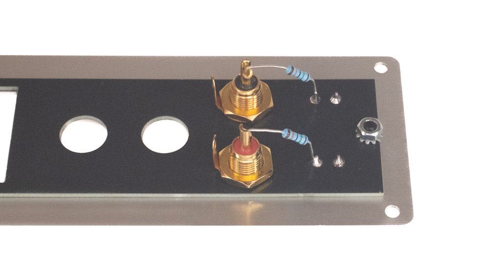 Attach the RCA connectors to the board. Leave the insulating plate inside the RCA connectors uninstalled. This way, the copper grounding on the circuit board runs to the screw terminals.